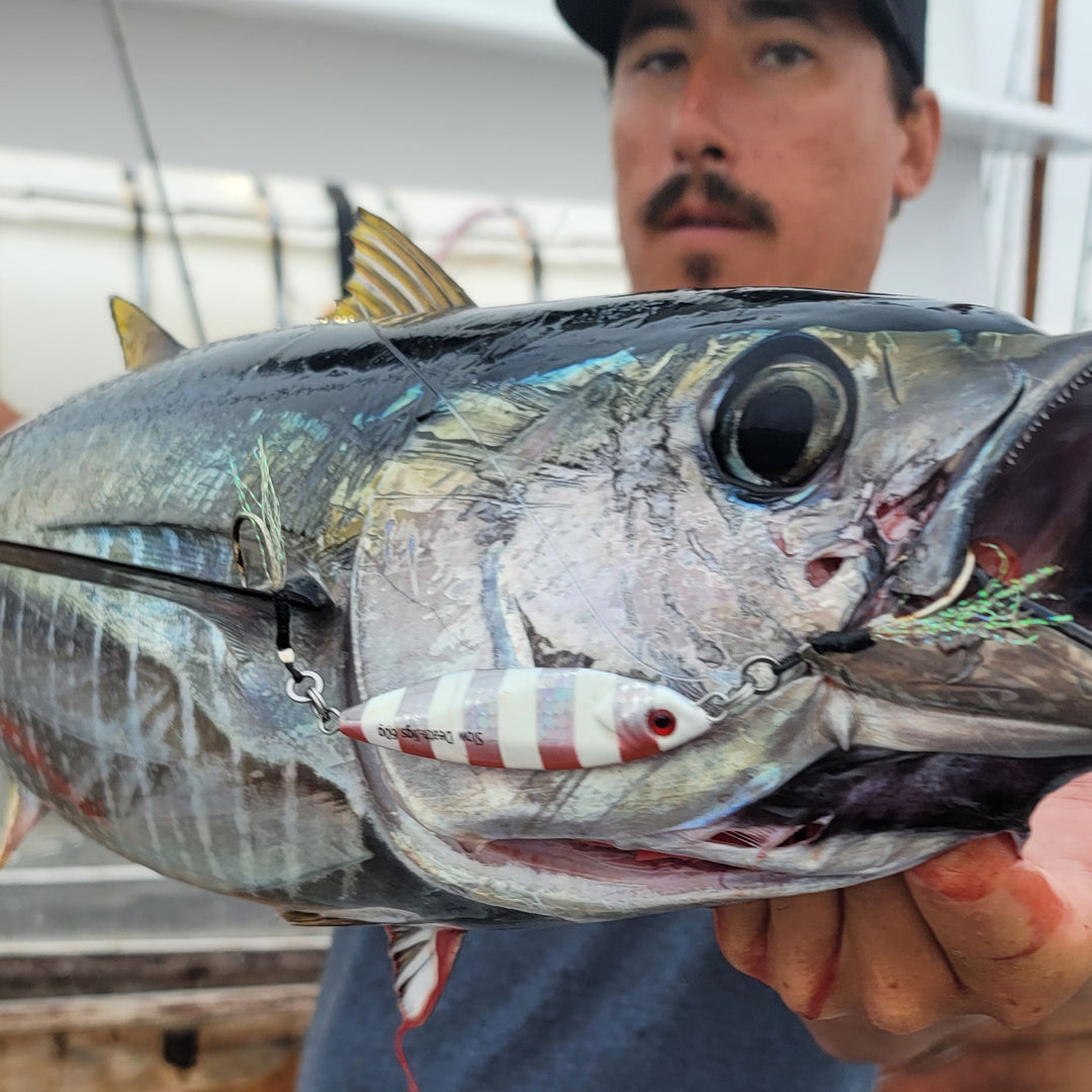 During the 2020 lockdowns, Mike Muto, a lifelong angler and black belt in Brazilian Jiu Jitsu, found himself perfecting his slow pitch jigging in San Diego’s bays, only to be frustrated by subpar jigs. Determined to find a solution, he launched Submission Fishing Co., crafting jigs that could handle everything from bass to bluefin. Drawing inspiration from martial arts, where practice and precision lead to victory, Submission Fishing’s jigs are designed to help you master the waters and secure that big catch, no matter the conditions.