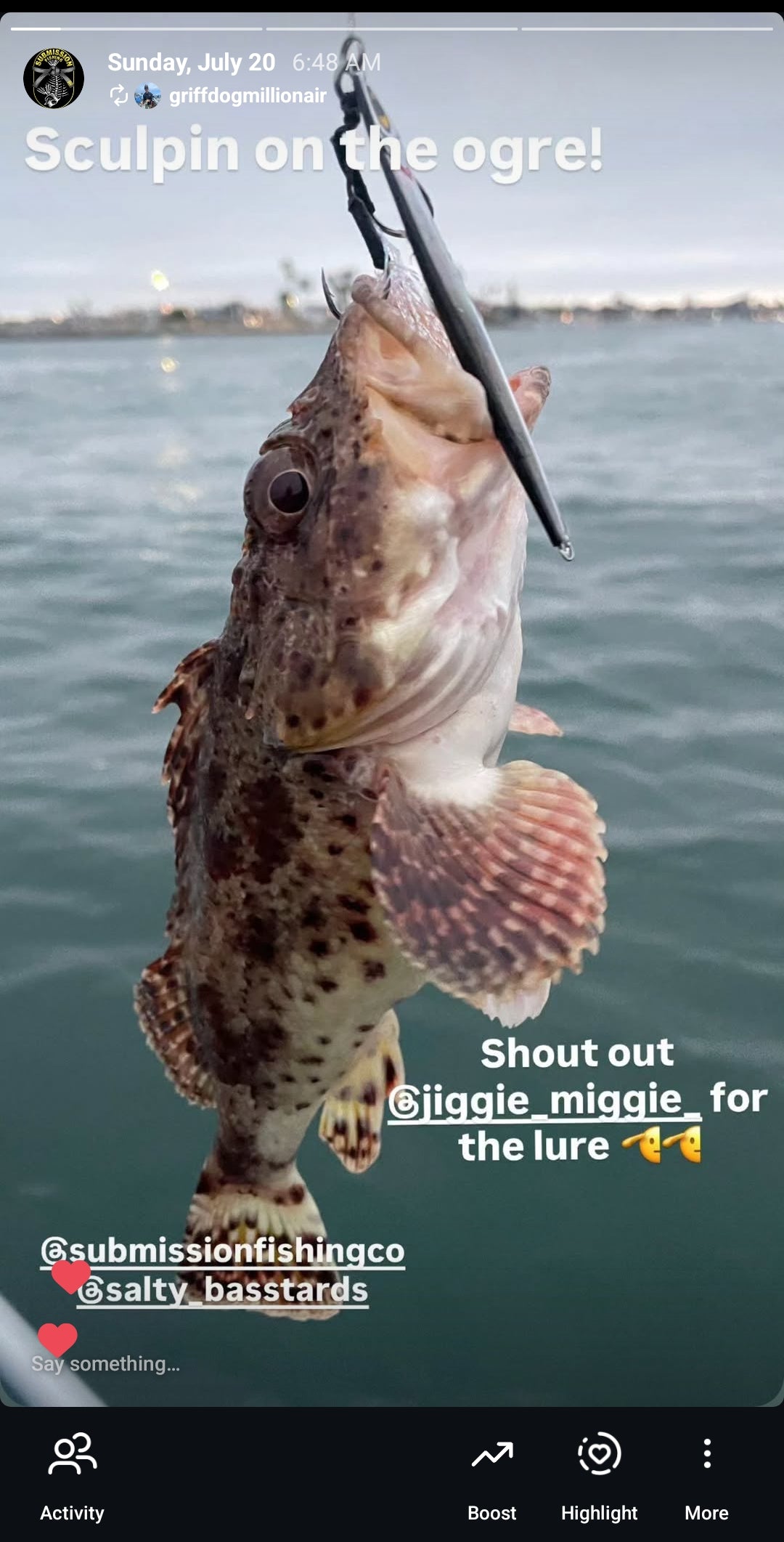 ❤️🔥Broke my PB record and first time catching 2 hogs on 1 jig." - Adrian