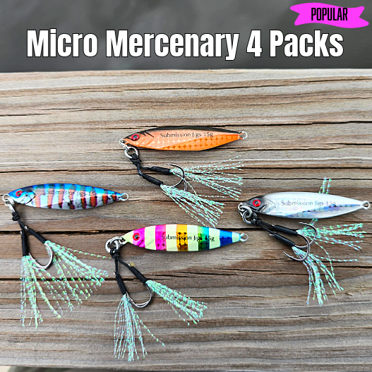 Slow pitch jigs are specifically designed to imitate a wounded baitfish with an unpredictable fluttering fall and enticing horizontal swim on the retrieve. Unlike traditional vertical speed jigs or plastics, our center-weighted, asymmetric slow pitch jigs stay in the strike zone longer and trigger reaction strikes even when fish aren’t actively feeding. Submission Fishing’s lineup—including the Micro Sumo and Micro Mercenary—are engineered for maximum lifelike action to outfish standard lures.