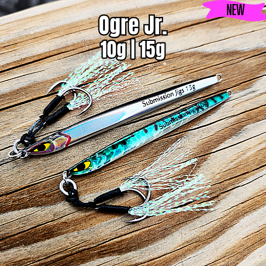 Once you’ve mastered the Micros and want to turn finesse into fury, it’s time for the Ogre Jr AKA the Baby Ogre. This micro knife jig slices deeper, swims longer, and covers more water with every drop. Perfect for pressured fish ignoring plastics or bait, it gives you the power to trigger violent reaction strikes in tight structure or open flats. The Ogre Jr isn’t just an upgrade—it’s your secret weapon when you’re ready to fish smarter, harder, and deadlier.