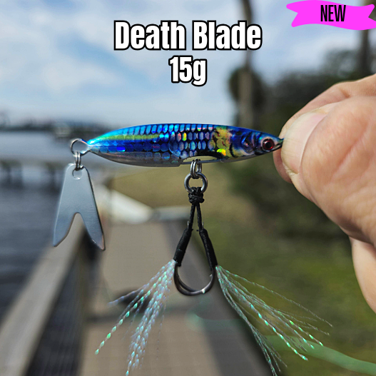 Round out your micro arsenal with the Death Blade—the only slow pitch jig built to dominate on the cast. When you need to cover ground from shore or target fish hugging structure, the Death Blade’s flashing fishtail and center-fixed hooks let you cast, twitch, and control every move with sniper precision. It’s the final piece that turns your tackle box into a complete strike-making machine, so you’re ready to create your own bite anywhere, anytime.